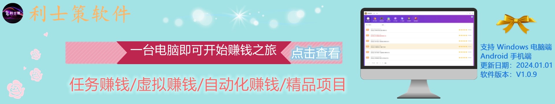 利士策网络赚钱聚合软件-购买须知(必读) 软件的基本要求,这个门槛或许会挡住你 软件虽然简单容易上手,但也并不是适合所有的客户,因为每个人的软硬件基础都不一样,特列出如下情景: 1.想要不劳动而获的人。 虽然我们的项目都非常简单,很多动动手...