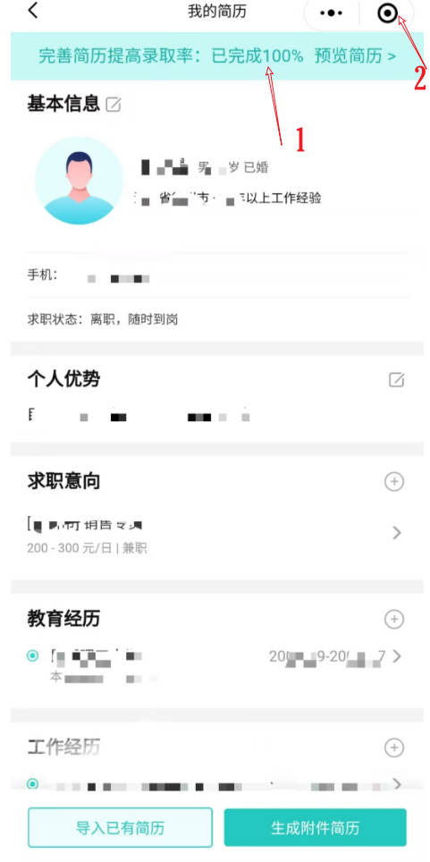 1.为了提升自身把握机会的能力,简历填写的完整度,最好要做到100%,至少90%为宜;