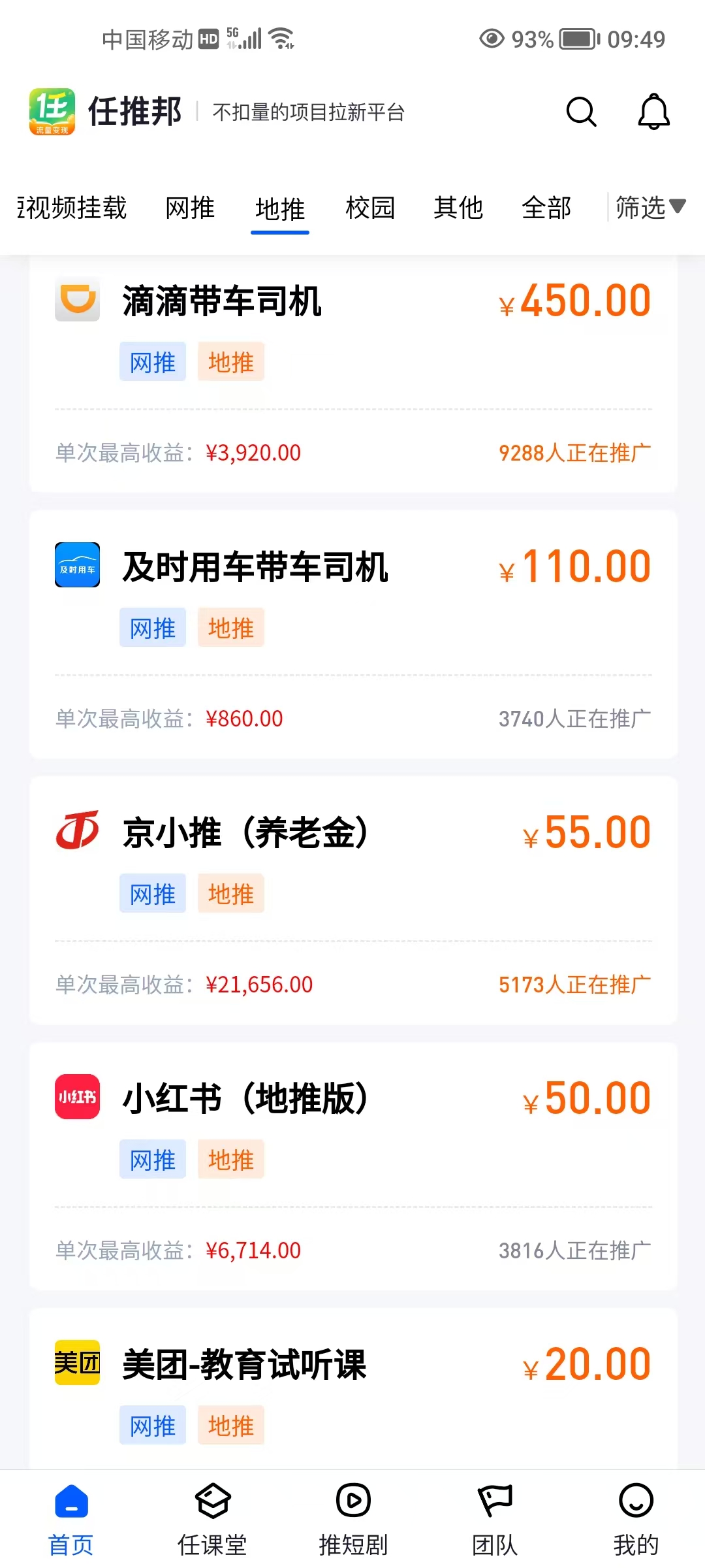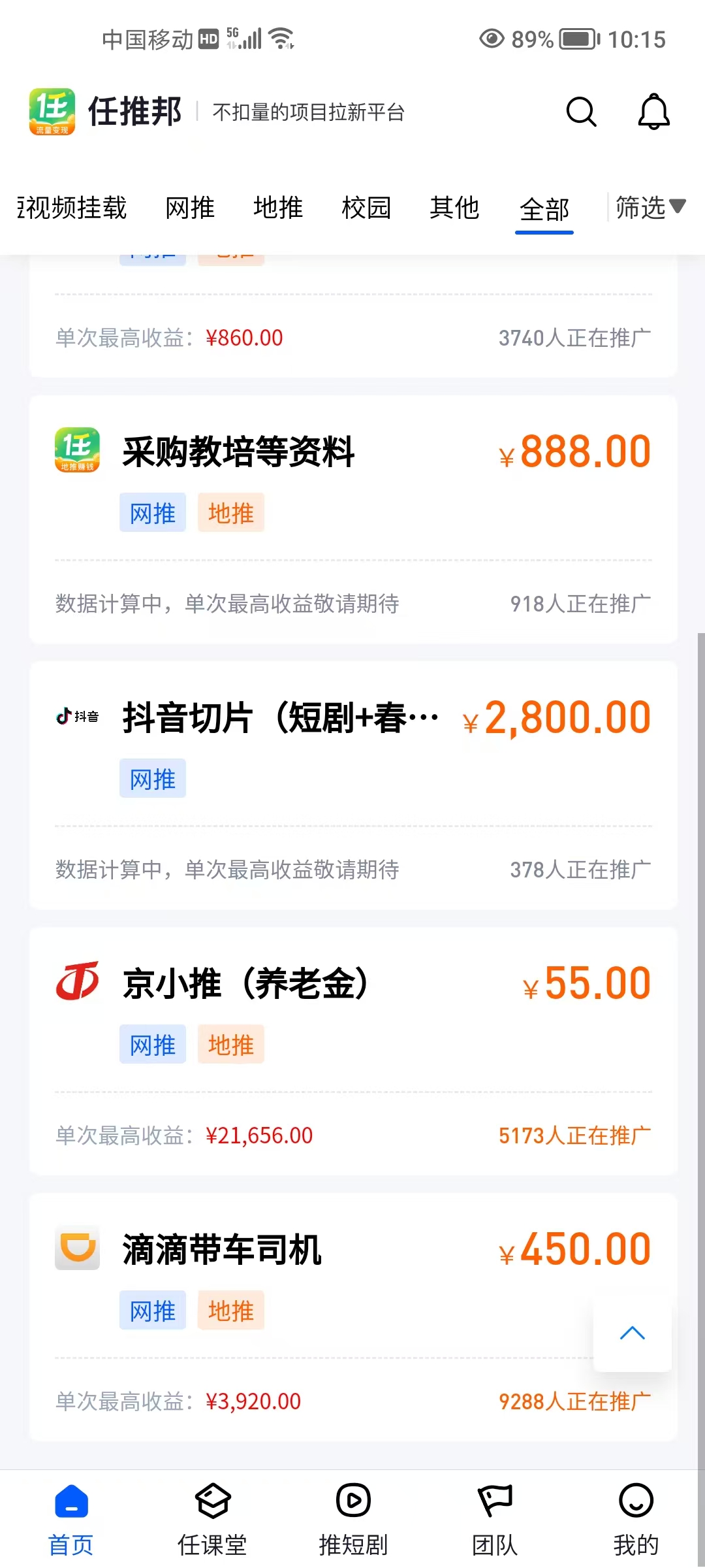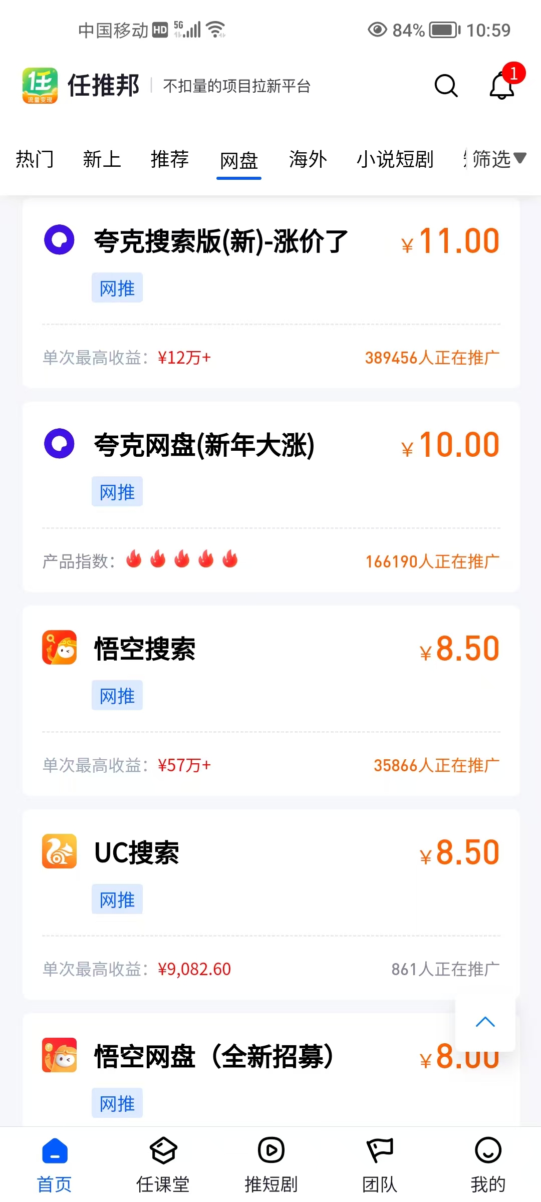 选高性价比任务:优先选择“短剧拉新”“网盘推广”等热门、低门槛、高转化项目。