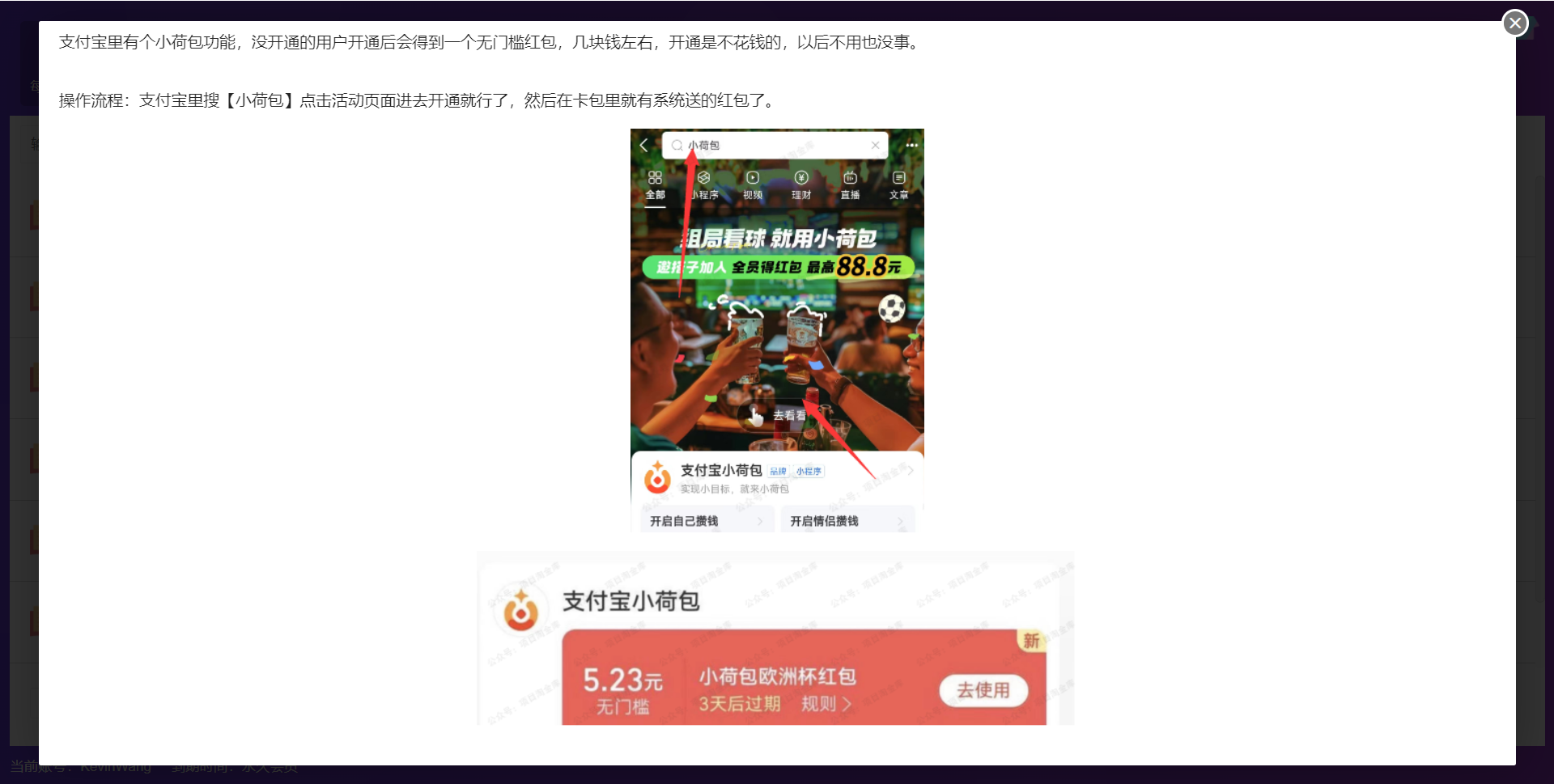 操作流程:支付宝里搜【小荷包】点击活动页面进去开通就行了,然后在卡包里就有系统送的红包了。