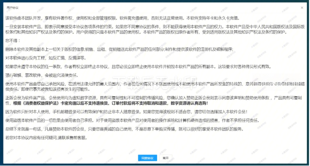 条款2、本软件在激活会员时,会弹出用户协议,请您认真逐行逐字阅读并理解。