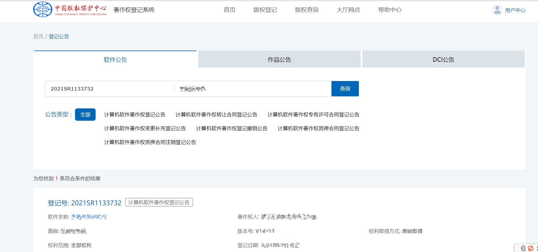 直达链接(需用Google Chrome浏览器打开):计算机软件著作权登记证书(登记号:2021SR1133732)